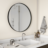Круглое настенное зеркало в металлической раме. Профиль рамы тонкий 4*40 мм. Выступ рамы 15 мм. Матовая порошковая покраска. На тыльной стороне рамы присутствуют крепёжные элементы. <br />