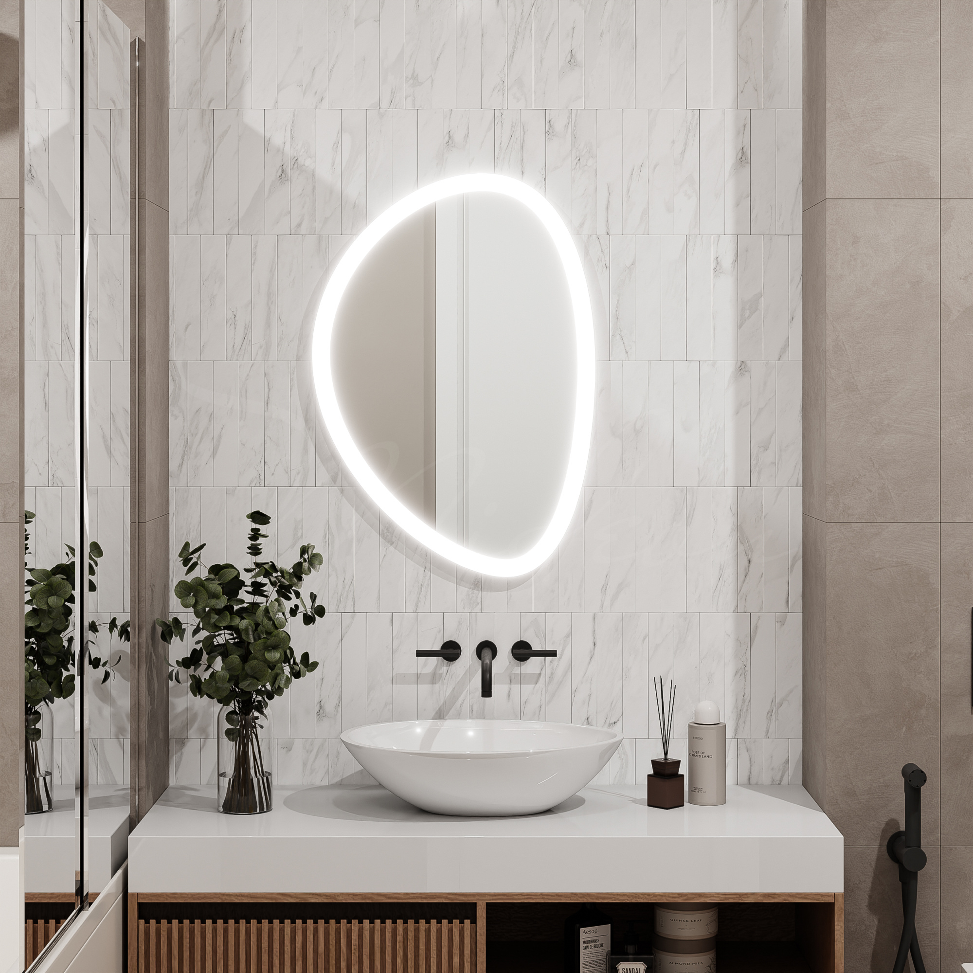 - Монтаж зеркала с подсветкой стоит 30% от стоимости зеркала, но не менее 3200 руб.