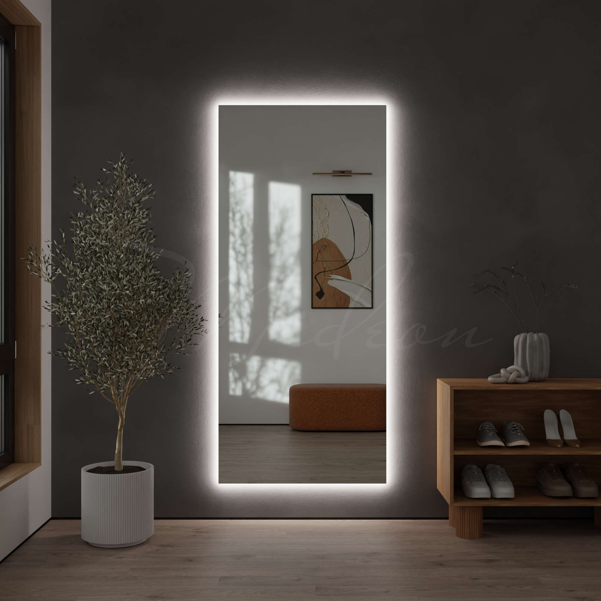 Все наши зеркала с подсветкой в прихожую имеют толщину всего 24 мм благодаря применению современной LED (светодиодной) подсветки, премиальных комплектующих и собственным производственным наработкам.